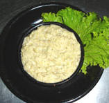 Deixar resfriar. À parte, misturar bem: Tahine, suco de limão, alho e sal. Juntar à pasta de grão-de-bico e misturar bem.