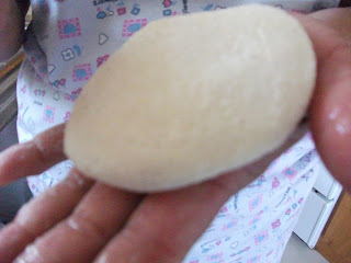 Pegar um pouco de massa, fazer uma bola, achatar com a palma da mão