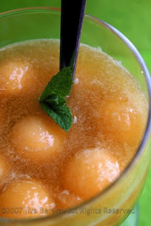 Juntar as bolinhas de melão à mistura e levar para gelar por pelo menos 4 horas ou o suficiente para ficar bastante gelado.