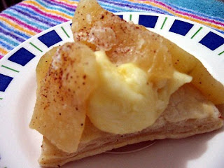 Distribuir o creme de confeiteiro no fundo de um refratário. Mergulhar as fatias de maçã no creme e reservar.