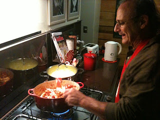 Quando começarem a cozinhar, juntar aos poucos o queijo Catupiry, mexendo para ajudar a derreter.