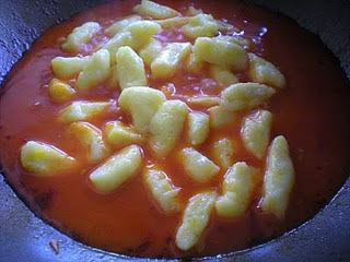 Quando os nhoques boiarem, escorrer e temperar com molho de tomate simples,