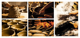 Todo o processo de queima é feito ao ar livre. As peças são colocadas sobre uma grande